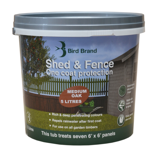 Why not finish off your efforts with a new coat of fence paint? Customers can buy Bird Brand Shed and Fence One Coat Protection in Chestnut Brown, Medium Oak, Autumn Gold, Red Cedar, Forest Green or Black from stock. Other colours are also available to order on request.